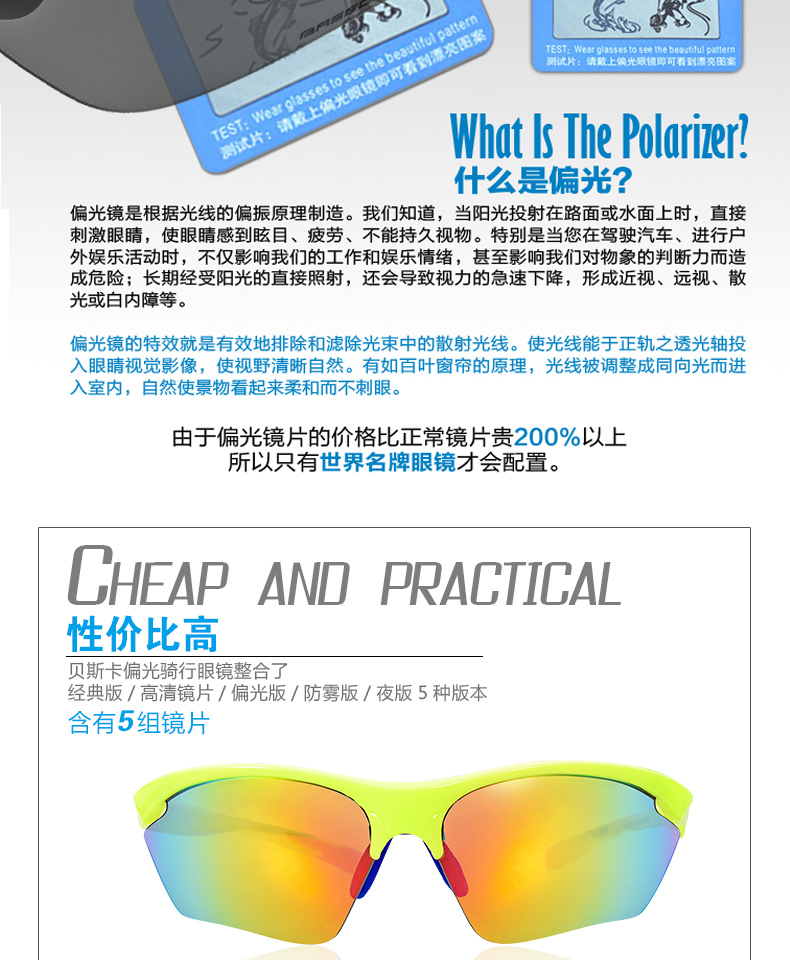 贝斯卡骑行眼镜自行车眼镜近视偏光山地车户外运动风镜防风沙男女眼镜BC-106