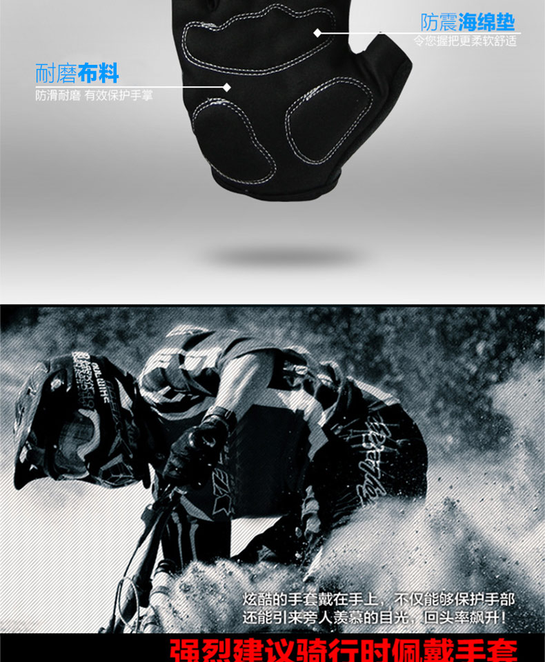 加厚打孔硅胶掌垫,有效防点点滴滴长时间骑行掌心酸痛,大面积减震垫能有效保护手掌及手腕.